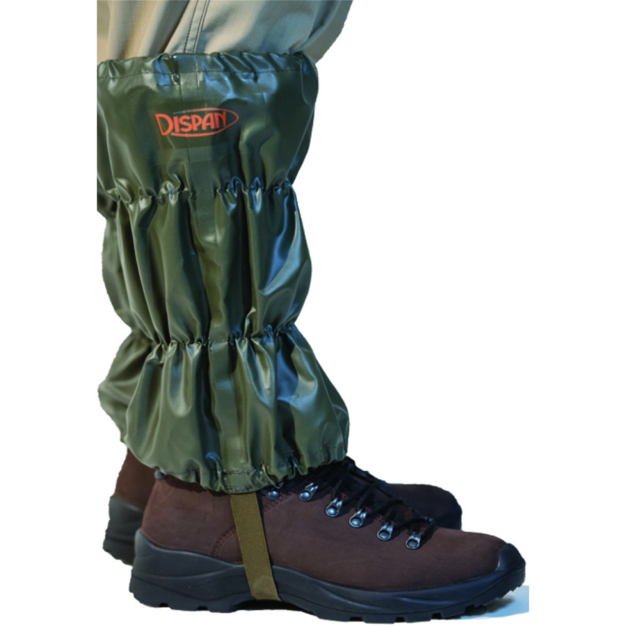 Γκέτες από χοντρό αδιάβροχο ύφασμα. Άνοιγμα με φερμουάρ στο πλαϊνό μέρος και έξτρα καπάκι με Velcro. Λάστιχα σταθεροποίησης στο πάνω μέρος της γάμπας & γάντζος που την σταθεροποιεί στο μποτάκι. Ένα μέγεθος. Χρώμα: Χακί.
