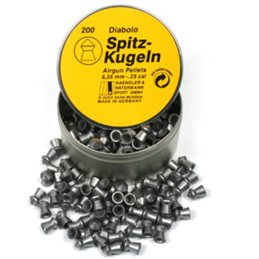 Τα pellet H&N Diabolo σε διαμέτρημα 6,35 mm έχουν μυτερή κεφαλή που εγγυάται διείσδυση.