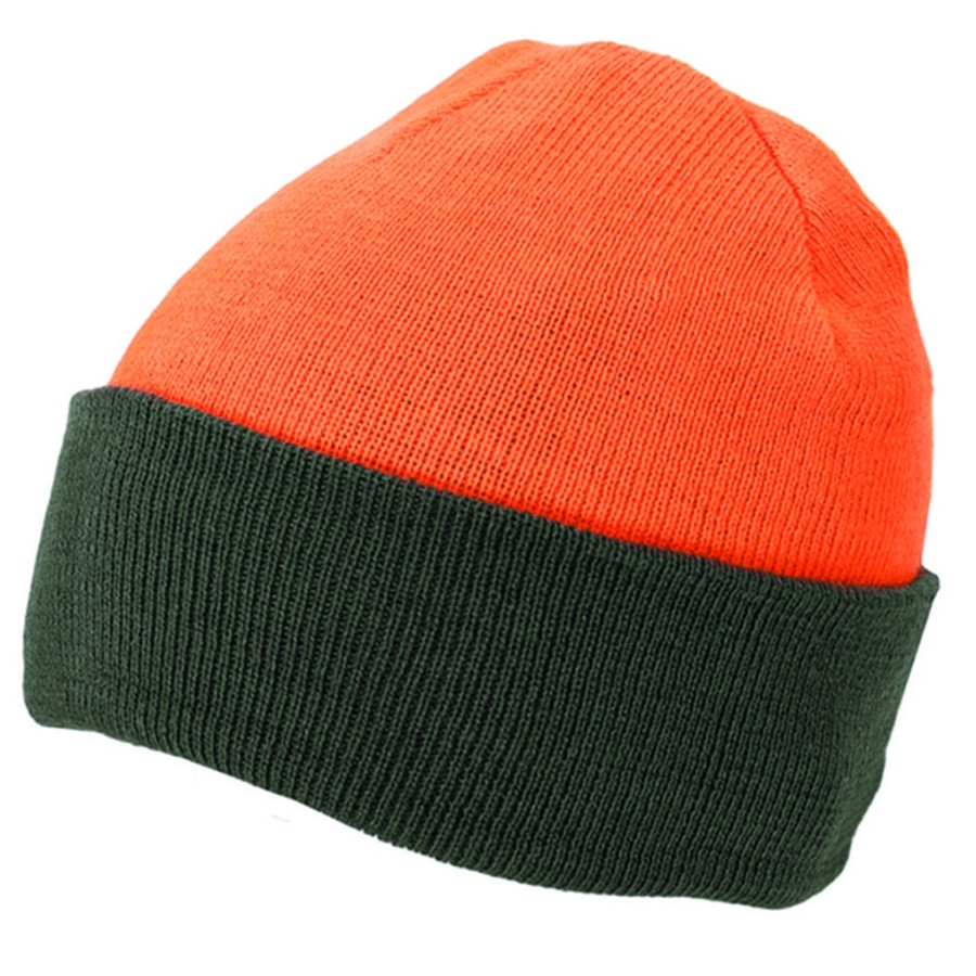 Σκούφος πλεκτός μάλλινος, 2 όψεων, χακί & πορτοκαλί. Ένα μέγεθος.